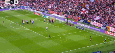 第15分钟,马竞球员吊到禁区,瑟洛特抢点没能顶到皮球