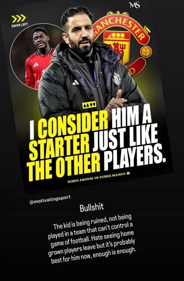 而名宿保罗-斯科尔斯更是公开指责阿莫林正在伤害这名曼联青训的新星。他在社交媒体写道:“胡扯。这孩子正在被毁掉,没有在一支无法控制比赛的球队里得到出场。我讨厌看到青训球员离开,但现在对他来说可能是最好的选择,够了就是够了。”